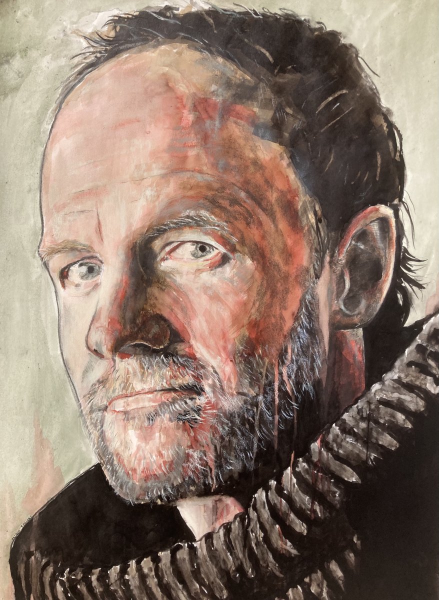 Er hingen toen twee grote portrettenvan mijn hand in de foyer, en toen bleek dat ze Wannes wel konden bekoren, stelde ik voor om hem ook te portretteren.