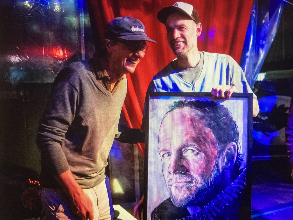 Op zondag 10 augustus heb ik dan zijn portret overhandigd, dit na het optreden van Het Zesde Metaal, als afsluiter van de Fonnefeesten te Lokeren.
